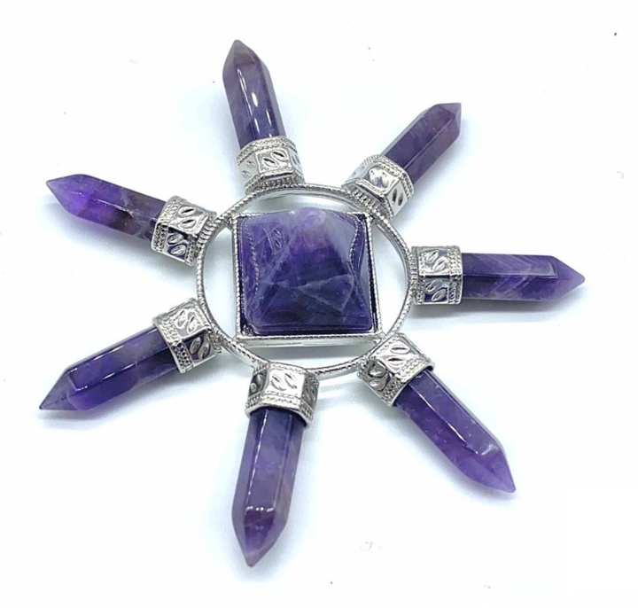 Deze energiegenerator wordt vaak gebruikt om een ruimte te zuiveren, negatieve energie te neutraliseren en positieve vibraties te bevorderen. Het is ook een krachtig hulpmiddel voor meditatie, het versterken van intuïtie en het ondersteunen van spirituele groei. Door de combinatie van de zeven punten, de piramide en de zilverkleurige verbindingen ontstaat een harmonieuze en energetisch krachtige structuur die de natuurlijke helende en spirituele eigenschappen van amethist optimaal benut.