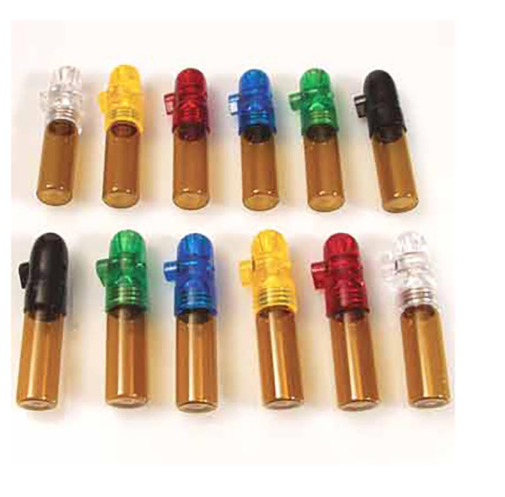 Deze amberkleurige bullet kun je makkelijk opendraaien om het flesje te vullen. Flesje is van glas en het opzetstuk is van acryl.