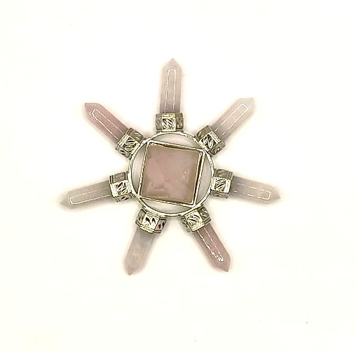 Een energiegenerator van rozenkwarts in stervorm is een mooi en krachtig spiritueel object dat vaak wordt gebruikt voor meditatie, energieversterking en het bevorderen van rust en helderheid. In dit ontwerp bestaat de generator uit zeven amethistpunten die in een stervorm zijn gerangschikt, waarbij elk punt symbool staat voor een bepaalde energie of aspect.