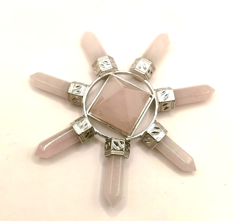 Deze energiegenerator wordt vaak gebruikt om een ruimte te zuiveren, negatieve energie te neutraliseren en positieve vibraties te bevorderen. Het is ook een krachtig hulpmiddel voor meditatie, het versterken van intuïtie en het ondersteunen van spirituele groei. Door de combinatie van de zeven punten, de piramide en de zilverkleurige verbindingen ontstaat een harmonieuze en energetisch krachtige structuur die de natuurlijke helende en spirituele eigenschappen van rozenkwarts optimaal benut.