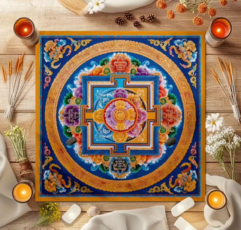 Tarotkleed of Altaardoek 75 x 75 cm. met Tibetaans design