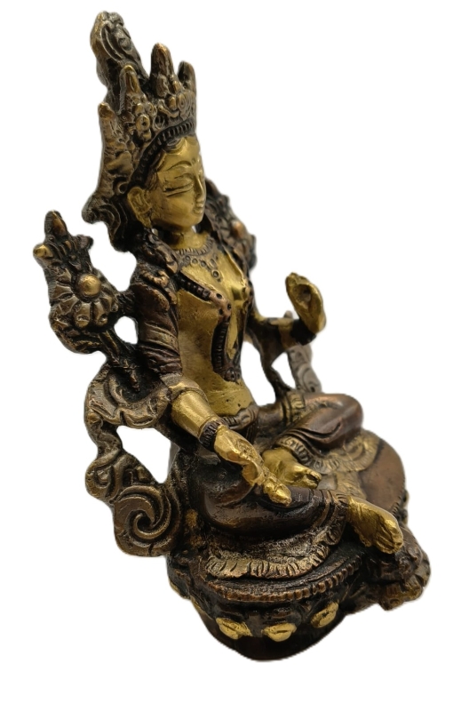 Witte Tara belichaamt de vrouwelijke godheid zelf. Haar naam betekent zowel "ster" als "redder". In Tibet wordt ze "Dölma" genoemd, wat simpelweg moeder betekent. Zij wordt daar vereerd als de moeder van alle Boeddha's. Haar rechterhand is naar beneden gericht in het gebaar van het vervullen van de wens, de linkerhand toont het gebaar van het verlenen van bescherming. Ze wordt vereerd als beschermer tegen alle gevaren. Op elk moment, dag of nacht, is het klaar om in te grijpen om te beschermen en te helpen.
